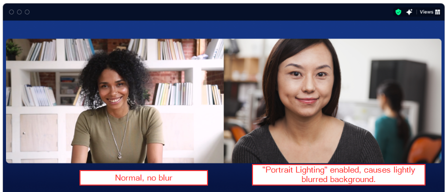 The image on the left has no background settings at all. The image on the right has "Portrait Lighting" enabled. The background is softly blurred, and looks attractive and professional.